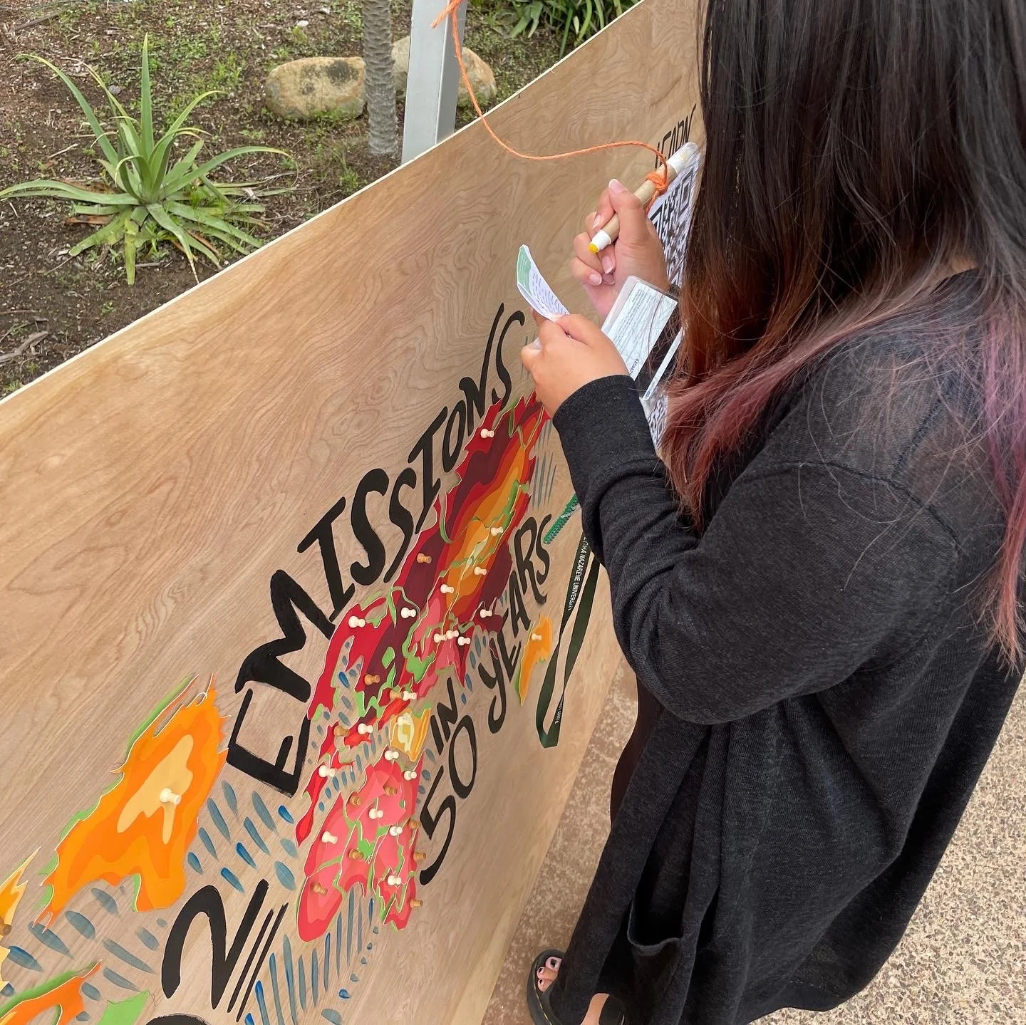 I decided to create a 6ft installation on plywood. Using an informative guide of CO2 levels in our world now and in 50 years, I illustrated a temperature map. This map was cut into different pieces. Each piece was a region of the world with a call to make a difference the back.